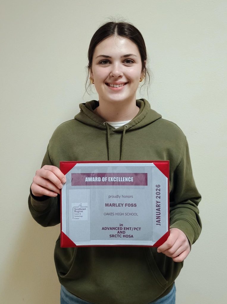 Our Student Award of Excellence winners for January are Marley Foss and Ben Adams. Marley is a junior at Oakes High School and is currently enrolled in the EMT/Advanced EMT Program through SRCTC-Oakes . She is the daughter of Rocky and Tami Foss. Ben is a senior at Hankinson High School and is currently enrolled in Diesel Technology Program through SRCTC/NDSCS . He is the son of Joe Adams and Donnell Stallman.